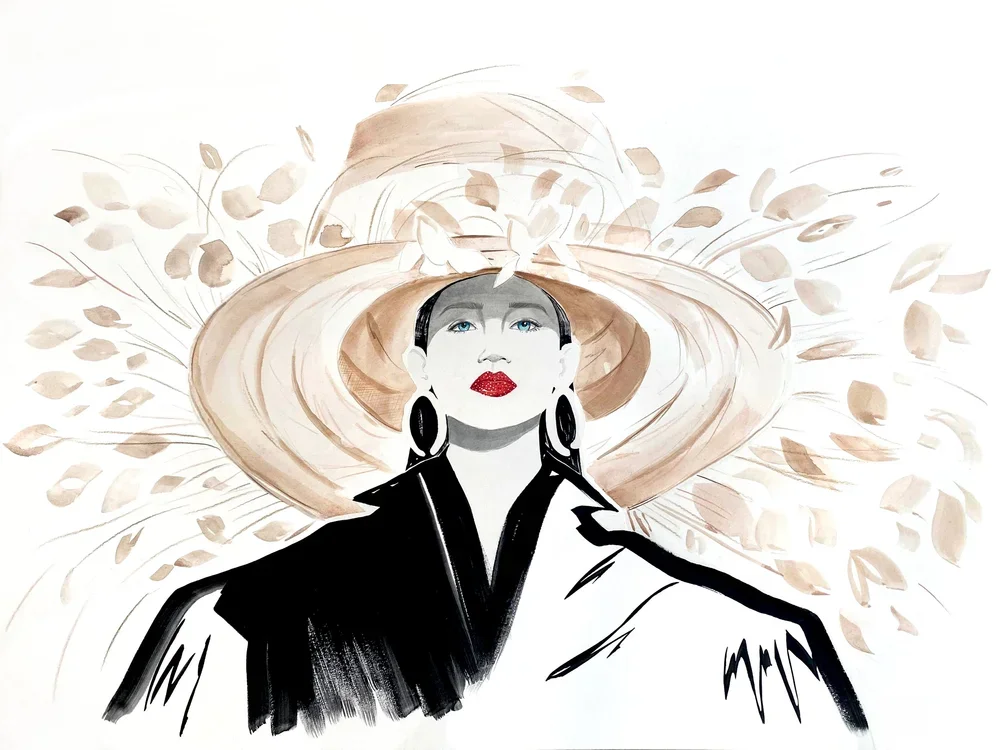I work with a variety of materials: ink, colored pencil, watercolor, gouache, layering different mediums to create texture, depth, and movement, especially when illustrating fabrics. I’m inspired by street style, nature, and everyday moments. The sketch phase is always loose and gestural, typically done on newsprint before moving to a premium surface for the finished piece.