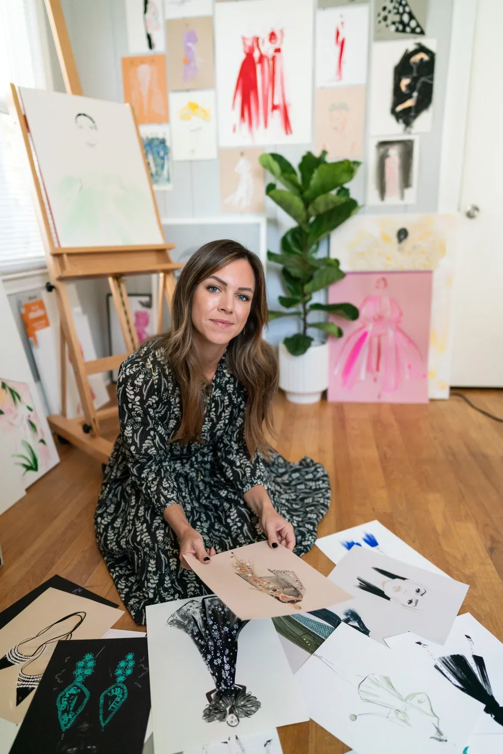 She creates feminine pieces that are made with graphite, watercolor, ink, charcoal and colored pencil. It’s all about a feeling and an attention to detail that makes her work different than other fashion illustrations.